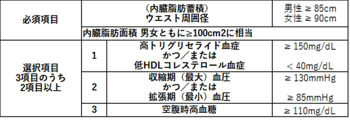 ※参考までに、現在メタボリックシンドロームの診断基準が見直され;腹囲が「男性 85cm、⼥性 90cm」以上から「男性 83cm、⼥性 77cm」以上とする提案がされています。